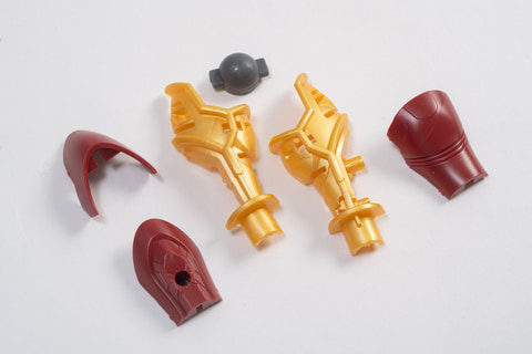 The gold parts of the body are all molded in color! The red is molded in two different colors to create a luxurious feel.