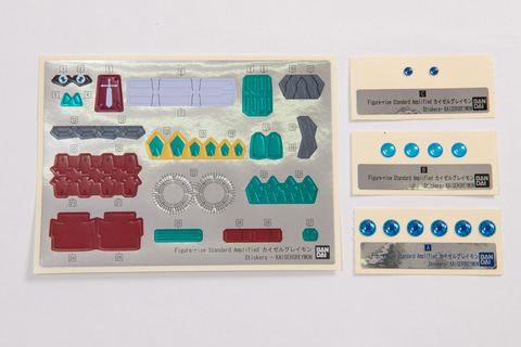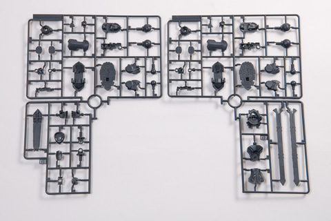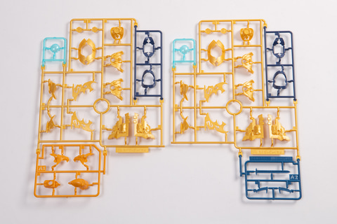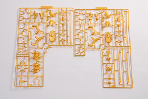 "Figure-rise Standard Amplified KaiserGreymon" package First, let's take a look at the kit in its entirety. There are 15 runners in total. One sticker is included, along with three jewel stickers that recreate the blue crystal-like parts found in various parts. Looking at the runners, the red and gold parts have a nice sheen and are very eye-catching. The Dragon Spirit Sword weapon is made up of large parts that make a strong presence. Even in its runner form, you can see how well each part has been recreated.