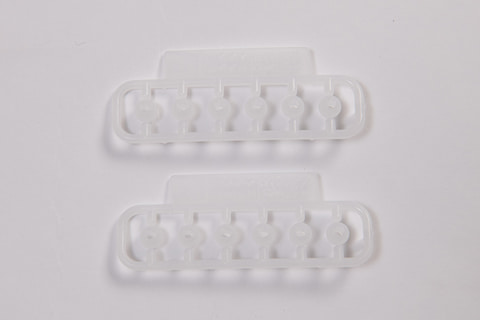 The parts are made of colored plastic and come in five colors, including gold and clear.